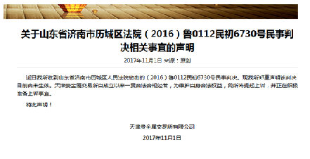 第二,目前只看到媒体报道,没有看到具体的法律判决文书,有些问题不清楚。比如,我国民事诉讼实行“原告就被告”原则,一般来说,此类案件应该归天津市法院管辖,而本案判决机关为济南市历城区人民法院,不知什么原因。还有,本次宣判只是一审判决,并不是最终结果。现在不好谈具体意见。