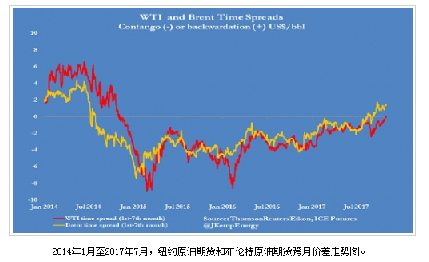 现货溢价值得是原油现货价格超过期货的价格,这被看做是原油当前需求高涨的表现。相反的,期货溢价指的是期货价格高于现货价格。