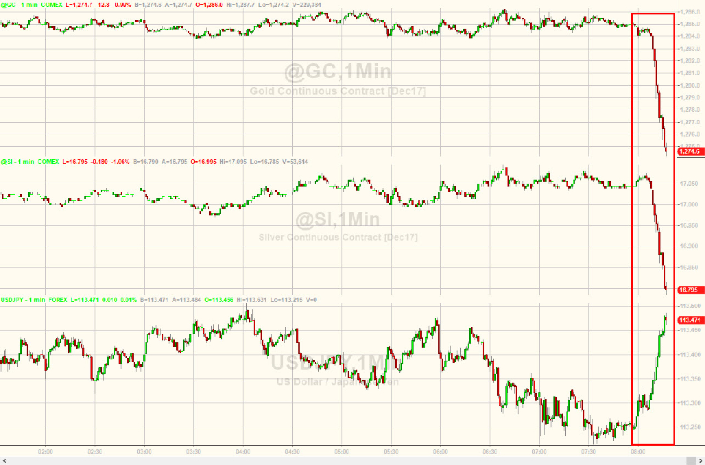 与此同时,现货白银也短线暴跌逾1%,刷新一周新低至16.8美元,日内跌幅为0.9%。白银期货也追随黄金期货急剧下挫。