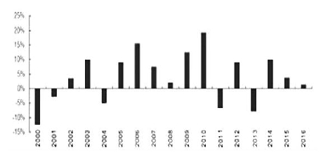 从11月末到12月,云南将陆续进入停割期。因此,一般而言12月是一个相对较强的月份。据统计,从2000年到2016年,一共有5个年份12月是下跌的。除此之外的12个年份,12月都是上涨的。上涨比例为70.59%。