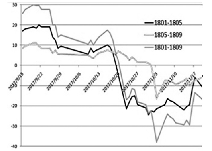 图为铁矿石合约之间的价差走势
