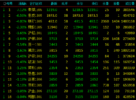 集金期货通2017年12月8日消息:双焦延续昨日跌势,9:47焦煤主力跌7.24%,焦炭主力跌6.30%。焦煤暂报1219元/吨,焦炭暂报1973元/吨。