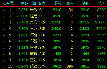 截止上午收盘,沪银涨2.12%,橡胶涨1.88%,淀粉涨1.45%;跌幅方面,硅铁跌5.67%,锰硅跌3.60%,焦炭跌3.48%。
