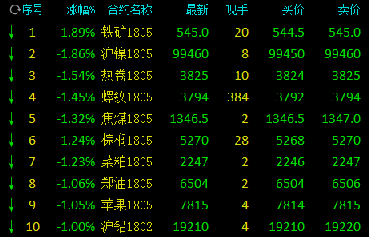 国内期货市场午盘多数飘绿 黑色系跌幅居前