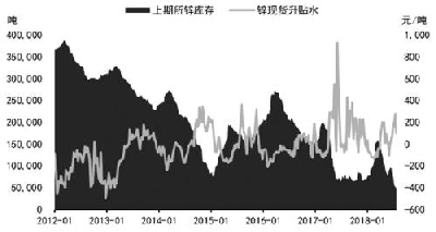 图为上期所锌库存与锌锭现货升贴水