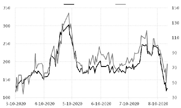 7月中旬开始,2009合约持仓量开始下降。进入8月,随着交割期临近,近月合约资金加速离场,2009合约持仓量急速下降。截至8月20日,2009合约持仓量降至6.22万手,较7月末的 39.65万手下降33.43万手,降幅达84.32%。同期,2009合约收盘价由1664元/吨涨至1813元/吨,涨幅为9%。目前2009合约持仓量折现货有62万余吨,而仓单量不足40万吨,预计后市持仓量仍会下降,但下降速度趋缓。