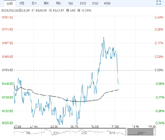 3月14日早盘,塑料主力合约弱势下行,目前盘内报8146元,跌幅-0.09%。塑料主力合约盘面震荡,原油夜间震荡上涨,下游春季订单支撑,库存中性,预计PE今日走势震荡,L2405日内8000-8260震荡操作