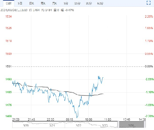 3月26日早盘,玻璃主力合约震荡盘整回落,目前盘内报1494元,跌幅-0.47%。目前盘面交易节后需求的兑现情况,近期终端开工恢复缓慢,玻璃产销缓慢恢复,本周延续累库,盘面估值偏低,预计近期反弹行情为主。