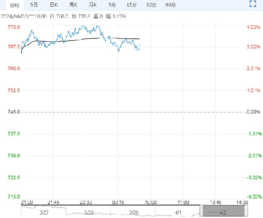 4月2日早盘,铁矿石主力合约维持高位震荡,目前盘内报768.5元,涨幅3.15%。当前矿价核心仍在成材端需求和铁水产量上,钢厂复产空间和铁水产量增加的持续性有待观察,需要进一步关注钢材需求情况。多空交织下,预计矿价会延续震荡走势。