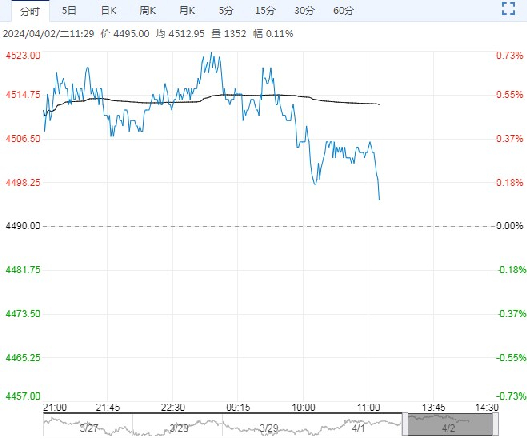 4月2日早盘,乙二醇主力合约小幅上涨,目前盘内报4495元,涨幅0.11%。国内供给收窄,而海外市场,装置负荷有所恢复,当前港口库存环比小幅回落至81万吨。聚酯高库存状态有所改善。乙二醇短期震荡反弹。关注海内外装置的变化。