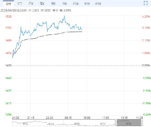 4月18日早盘,玻璃主力合约维持高位震荡,目前盘内报1503元,涨幅3.09%。玻璃现货市场不具备明显驱动,但由于原材料上涨明显,玻璃也受到正反馈影响。预计日内玻璃期货价格延续偏强走势,关注玻璃现货产销、宏观情绪变化及原料纯碱的走势情况。