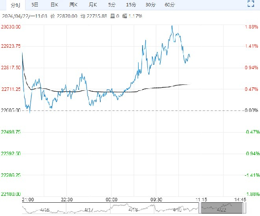 4月22日早盘,沪锌主力合约震荡走高,目前盘内报22870元,涨幅1.17%。当下贵金属与有色商品情绪高涨,价格仍居高位。虽然供应端维持紧俏,但美联储表态偏鹰,降息预期不断后移。叠加下游消费相对疲软,若有色情绪退潮,锌价或有下行风险。