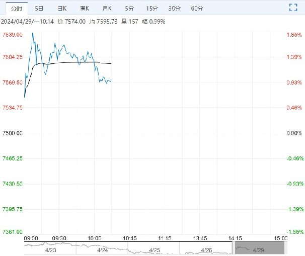 4月29日早盘,苹果主力合约震荡走高,目前盘内报7574元,涨幅0.99%随着苹果销售窗口不断缩小,供应端压力与日俱增,时令水果陆续供应形成替代,目前来看,节日备货暂无形成明显提振,持续关注差货去库进度及新季产区气候变化,临近五一假期,建议投资者合理操作,控制风险。