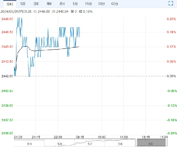 5月9日早盘,玉米主力合约小幅上涨,目前盘内报2446元,涨幅0.16%。短期来看,巴西天气影响导致外盘玉米逐步攀升,连盘玉米亦有跟涨。待短期担忧情绪释放后,中短线关注逢高沽空。注意资金管理,设置好止损。