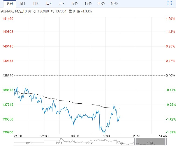 6月14日早盘,沪镍主力合约弱势震荡为主,目前盘内报136980元,跌幅-1.33%。上周末美国公布非农数据靓丽引发美元大涨,金属商品均大幅回调,此阶段价格波动矫枉过正时常发生,市场将会过多关注基本面消息,目前基差连续3天为正,现货支撑显现,建议逢低买入或观望。投资者结合自身交易习波段操作。