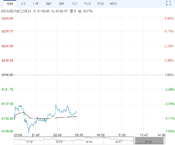6月18日早盘,白糖主力合约弱势下行,目前盘内报6146元,跌幅-0.97%。虽然现货给出了进口利润,但是从实际船报来看5-6月没有之前预期这么多进口,国内现货不好跌,基差还是挺在高位,叠加糖浆进口限制的政策预期,短期糖价向下空间不大,但不改变中长期增产,价格趋势向下的格局。策略上建议逢反弹逐步加空,注意短线节奏变化。