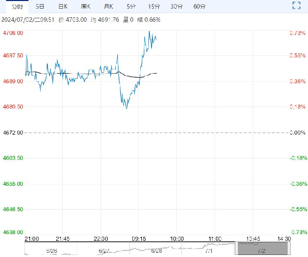 7月2日早盘,乙二醇主力合约震荡走高,目前盘内报4703元,涨幅0.66%。乙二醇港口库存持续去化,目前压力不大,装置开工回升,压制盘面,目前装置和港口情况对盘面影响较大,预计短期乙二醇重心偏强调整为主,但涨幅或受限,建议多单逢高分批止盈,关注港口库存和装置变动情况。