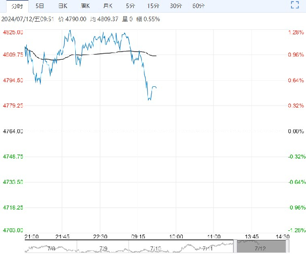 7月12日早盘,乙二醇主力合约震荡走高,目前盘内报4790元,涨幅0.55%。乙二醇港口库存持续去化,压力不大,装置开工小幅回升,需求端影响中性,目前装置和港口情况对盘面影响较大,预计短期乙二醇高位震荡调整,但涨幅或受限,建议谨慎追涨,前期多单可逢高分批止盈,关注港口库存和装置变动情况。