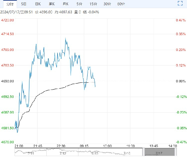 7月17日早盘,乙二醇主力合约小幅走低,目前盘内报4696元,跌幅-0.04%。乙二醇成本逻辑影响有限,库存偏低、下游开工仍处于高位,短期供需结构偏强,但未来供需预期转弱,且经过前期大幅上涨,乙二醇有回调预期,关注乙二醇检修装置动态及下游聚酯减产保价意向下的降负幅度。