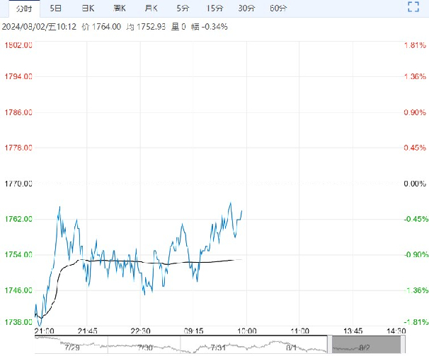 8月2日早盘,纯碱主力合约小幅走低,目前盘内报1764元,跌幅-0.34%。目前纯碱库存高位且仍在累库,现货处于偏弱局面。后续看,今年纯碱过剩预期较为一致,盘面逐步走向成本定价,但进入8月夏季高温,不排除供应端仍有意外,价格低位,保持警惕。