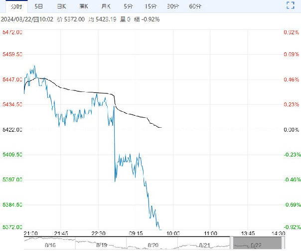 8月22日早盘,PTA主力合约弱势下行,目前盘内报5372元,跌幅-0.92%。需求方面聚酯整体库存依旧偏高,终端织造订单在高温天气缓和影响下局部改善,旺季聚酯开工仍有提升空间但可能相对有限,PTA后市的累库压力可能给价格带来向上的阻力。