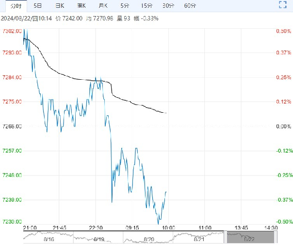 8月22日早盘,短纤主力合约小幅走低,目前盘内报7242元,跌幅-0.33%。短纤企业停车降负增多对价格形成支撑,但终端和下游需求疲软且成品库存压力仍较大对价格形成压制,短纤绝对价格仍跟随成本波动。