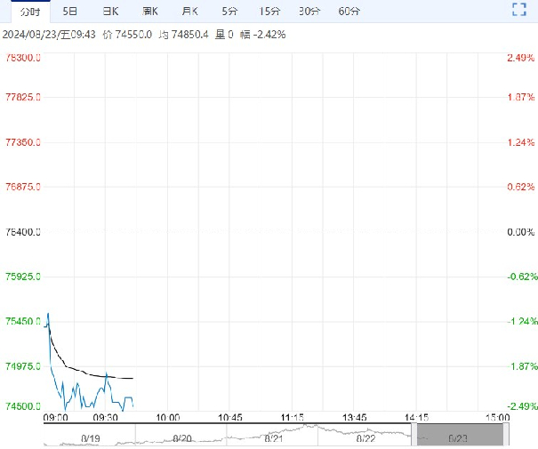 8月23日早盘,碳酸锂主力合约大幅下行,目前盘内报74550元,跌幅-2.42%。部分锂盐厂受期货盘面反弹影响上调报价,下游企业开始低价采购,现货成交重心上移。昨日部分多头止盈离场价格回吐之前涨幅,不过在供应端持续减产和下游需求小幅回升下价格下跌空间有限。多空博弈加剧,建议观望为主,谨慎交易。