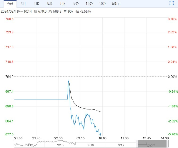 9月18日早盘,铁矿石主力合约大幅下行,目前盘内报679元,跌幅-3.55%。供应宽松格局下港口库存去化能力不足。往后看,终端基本面边际改善,铁水也在缓慢复产,从盘面走势看,短期空头情绪缓和,或维持震荡,关注国庆节前终端需求成色。