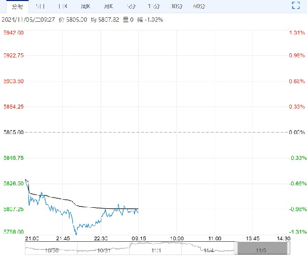 11月5日早盘,白糖主力合约弱势震荡为主,目前盘内报5805元,跌幅-1.02%。目前国内处于榨季转换期间,且进口倒挂幅度较大,供应偏紧,但随着广西即将开榨,未来供应压力将逐渐增加。短线郑糖价格有走弱趋势,中长期全球糖市仍处于增产周期,维持逢高做空思路。