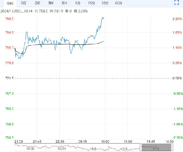 11月5日早盘,铁矿石主力合约大幅上行,目前盘内报788.5元,涨幅2.20%。目前铁矿石估值较高有一部分来自于宏观预期。目前的价格继续向上需要超预期的利好才能支撑。关于特朗普交易,市场交易的比较充分,部分资金在选举前获利了结。特朗普当选将增加国内经济刺激的可能性。因此需要特别关注宏观上的情况。