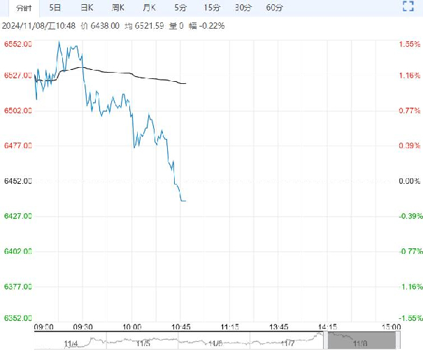 11月8日早盘,锰硅主力合约小幅走低,目前盘内报6438元,跌幅-0.22%。近期市场需求持续小幅回暖,市场预期有所好转,当前铁合金供需情况由过剩逐步趋于平衡;铁合金期货回落后试探前期市场底部获得支撑,成本支撑作用逐步显现,预计下行空间较小,建议关注回调做多的机会,仓位宜轻。