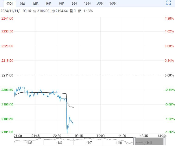 11月11日早盘,玉米主力合约弱势震荡为主,目前盘内报2186元,跌幅-1.13%。当前技术面形势不明朗,主力合约回落再次跌破月均线向下寻找支撑,虽然新季玉米集中上市带来的短期供应压力较大,但全球货币环境逐步趋于宽松,全球年度供需状况尚可,收储力度有望加强,我们建议以多头思路为主,回调时可轻仓尝试。