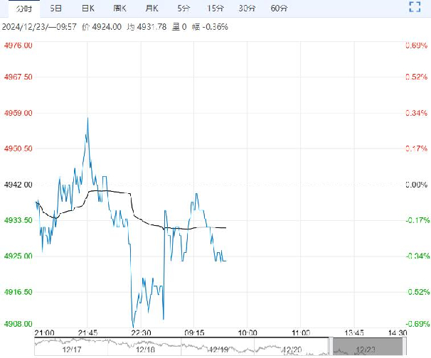 12月23日早盘,PTA主力合约小幅走低,目前盘内报4924元,跌幅-0.36%。下游聚酯负荷转淡季,供给端即使多套装置停车负荷仍然偏高,新装置投产供给压力上升,供需格局整体较弱。但现实成本端PX估值较低,PXN下方有支撑,目前绝对价格主要随原油,原油在美国大选后整体预期震荡偏弱,建议逢高空配。
