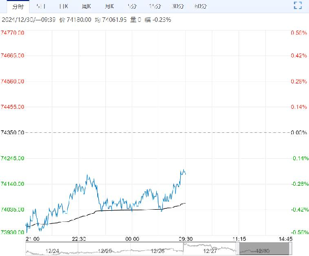 12月30日早盘,沪铜主力合约小幅走低,目前盘内报74180元,跌幅-0.23%。产业上看临近年底下游需求偏淡,而供应相对正常,供需关系预计延续偏弱,海外现货供需偏宽松。总体预计铜价反弹空间相对受限,关注本周PMI数据对市场情绪的影响。