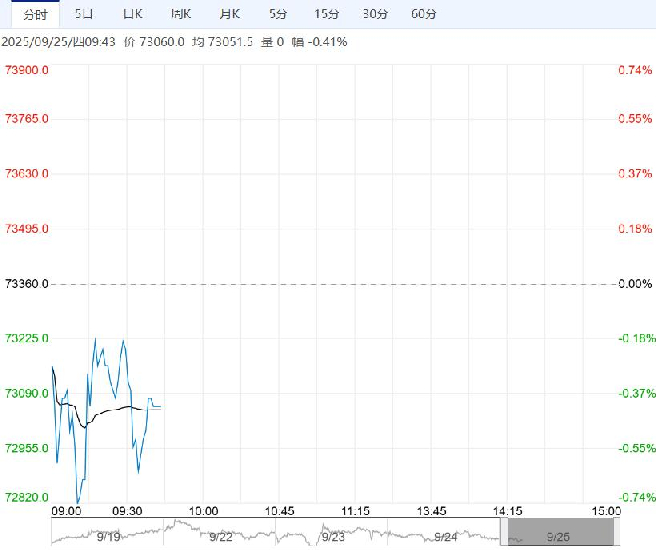 9月25日早盘,碳酸锂主力合约弱势下行,目前盘内报73060元,跌幅-0.41%。当前旺盛需求对底部形成支撑,但供给恢复预期压制上方空间,多空资金较为谨慎。夜盘商品氛围偏多,或对碳酸锂有所提振,后续建议关注资源端供给持续性、需求强预期兑现,及权益市场氛围。