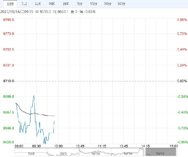 10月14日早盘,工业硅主力合约弱势下行,目前盘内报8655元,跌幅-0.63%。行业处于供需双增格局,但库存去化明显放缓,甚至存在累库迹象,表明基本面已边际转向宽松,考虑两大主产区供应增减不一,同时核心消费流向多晶硅需求存在不确定性,市场暂无明显单边驱动,盘面或围绕成本线附近波动。策略上,波段操作思路。