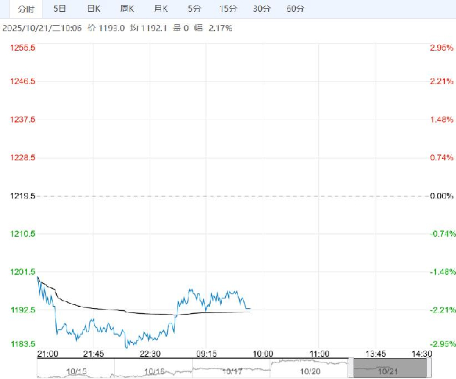 10月21日早盘,焦煤主力合约大幅回落,目前盘内报1193元,跌幅-2.17%。焦煤价格暂时平稳。焦炭方面,现货采购价格经历两轮下调后,首轮上调逐步落地。近期焦化利润相对稳定,焦企开工情况平稳,需求量则仍维持在较高水平。从技术面来看,焦炭焦煤期货短期或延续震荡。策略上,投资者可关注回调买入机会,注意仓位管理。