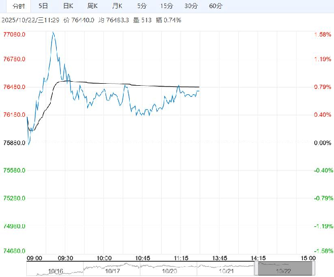 10月22日早盘,碳酸锂主力合约震荡走高,目前盘内报76440元,涨幅0.74%。从供应端来看,碳酸锂产量仍处于高位,显示出锂资源端弹性较大,在碳酸锂价格持续高位震荡的行情下供应端利润充足,生产积极性较高;消费端来看,储能板块表现突出,储能电池头部企业排产维持高位,动力电池需求同步改善,在供需双旺格局下,碳酸锂社会库存逐步去化,关注消费持续性。