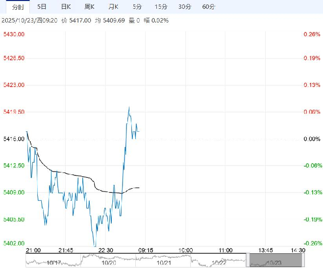 10月23日早盘,白糖主力合约小幅上涨,目前盘内报5417元,涨幅0.02%。国内方面,从交易逻辑来看,市场的交易重心转向新榨季的估产。天气方面,进入7月份之后广西降雨情况较好,降雨量较往年偏多。从遥感数据来看,目前广西甘蔗植被指数同比有所增加,25/26榨季广西食糖产量的预期相对较好,关注后续天气情况和甘蔗长势。