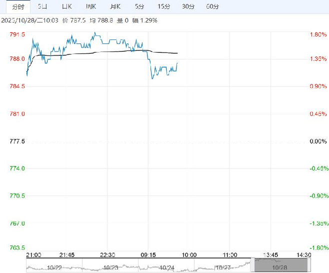 10月28日早盘,铁矿石主力合约维持震荡偏强,目前盘内报787.5元,涨幅1.29%。近期铁矿供需结构环比继续转好,市场关注西芒杜项目进度加快,供应端或有一定增量,情绪上仍有转空的可能。策略方面:激进投资者可关注轻仓做空思路,关注政策利多带来的加仓机会。