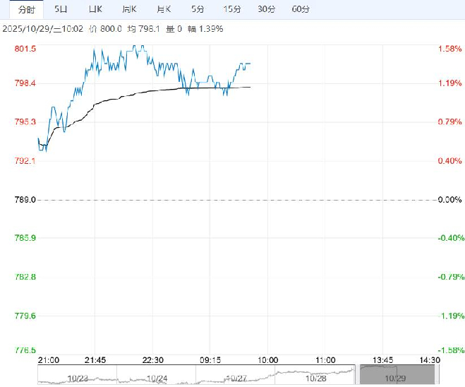 10月29日早盘,铁矿石主力合约维持震荡偏强,目前盘内报800元,涨幅1.39%。近期铁矿供需结构环比继续转好,市场关注西芒杜项目进度加快,供应端或有一定增量,情绪上仍有转空的可能。策略方面:激进投资者可关注轻仓做空思路,关注政策利多带来的加仓机会。