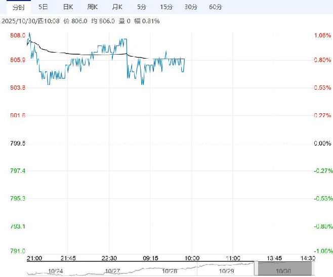 10月30日早盘,铁矿石主力合约震荡走高,目前盘内报806元,涨幅0.81%。近期铁矿供需结构环比继续转好,市场关注西芒杜项目进度加快,供应端或有一定增量,情绪上仍有转空的可能。策略方面:激进投资者可关注轻仓做空思路,关注政策利多带来的加仓机会。