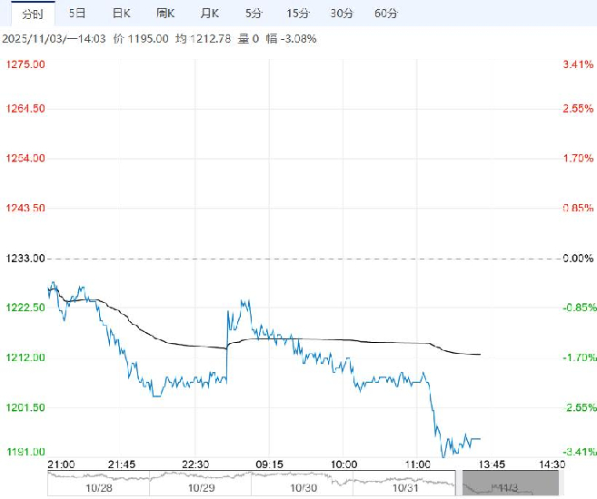 11月3日午盘,纯碱主力合约弱势震荡为主,目前盘内报1195元,跌幅-3.08%。部分装置提负,供应环比增加。下游刚需平稳运行为主,光伏玻璃点火和冷修并存,整体产能波动不大。短期成本附近,预计跟随上游和宏观情绪波动,长期仍是供需过剩格局,逢高做空思路对待。