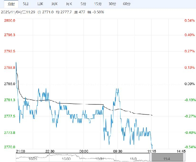 11月4日早盘,氧化铝主力合约弱势下行,目前盘内报2771元,跌幅-0.50%。随着月度结算价将在11月低于高成本产能完全成本且秋冬季重污染天气亦对开工率存干扰,市场对氧化铝后续减产存预期。但一方面实质减产仍未落地、供需仍过剩,另一方面进口窗口目前仍持续打开,对氧化铝价格带来压力。后续动态关注供应端及供需平衡的变动。