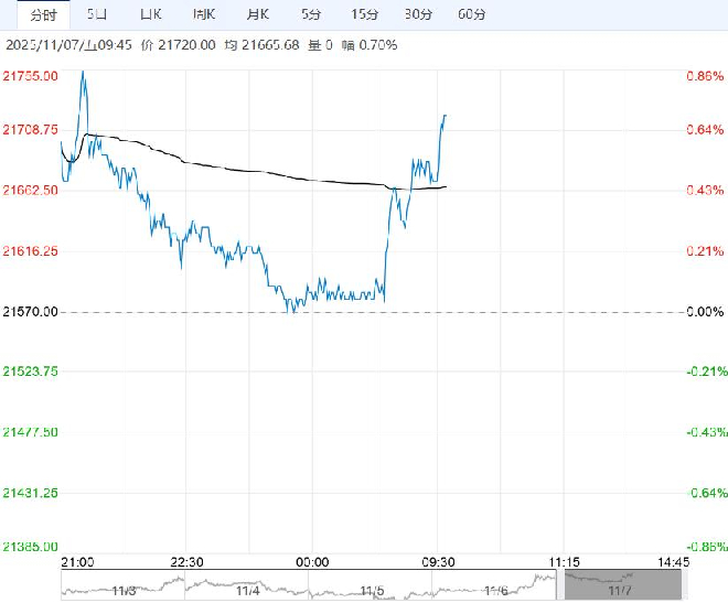 11月7日早盘,沪铝主力合约震荡走高,目前盘内报21720元,涨幅0.70%。10月以来国内库存和现货表现中性,表观消费同比基本持平。宏观情绪主导,铝市基本面共振有限,短期震荡偏强阻力位指向2024年11月高点21800元附近,市场分歧大,不宜追涨。