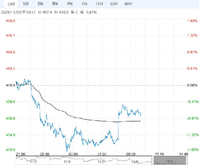 11月7日早盘,原油主力合约弱势下行,目前盘内报457.4元,跌幅-0.67%。尽管地缘溢价已经全部消散,OPEC虽做增产但量级极低,与此同时我们观测到OPEC供给仍未放量,因而油价短期仍然不宜过于看空。基于此我们维持对油价低多高抛的区间策略,但当前油价仍需测试OPEC的出口挺价意愿,建议短期观望为主,等待油价下跌时OPEC出口下滑做出验证。