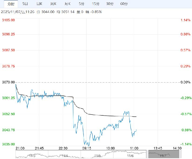 11月7日早盘,豆粕主力合约弱势下行,目前盘内报3044元,跌幅-0.85%。国内大豆库存处历年最高水平,豆粕库存偏大,榨利承压,不过逐步进入去库季节,存在一定支撑。预计豆粕短期跟随进口成本上涨,榨利回升,刺激买船,中期全球大豆供应宽松预期未改,仍以反弹抛空为主。