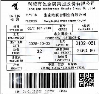 一、同意张家港联合铜业有限公司生产的“TG-ZJG 铜冠”牌A级铜在我所注册,注册产能10万吨,执行标准价。