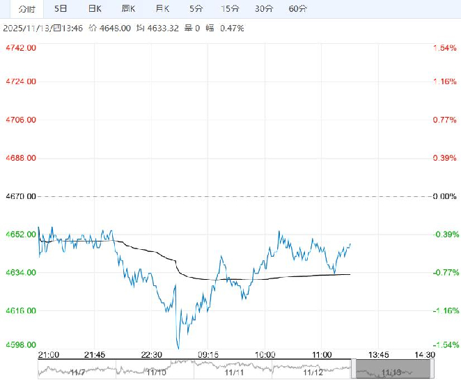 11月13日午盘,PTA主力合约弱势下行,目前盘内报4648元,跌幅-0.47%。PTA基本面不如PX,PTA11月前累库压力预计不大,但总体预期累库,预期较弱导致价格和加工差承压,需要关注供应端反内卷的进行情况,只有供给侧缩减才能改变PTA供需状况。绝对价格运行跟随成本,配置上跟随成本偏多配置。