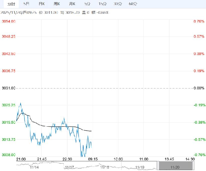 11月20日早盘,豆粕主力合约弱势下行,目前盘内报3011元,跌幅-0.66%。国内端近月大豆采购基本完成,远月大豆采购逐步推进;短期进口大豆到港充足,国内大豆及豆粕库存充足;国内增加美豆采购使远月缺口将不复存在,短期连粕弱于美豆,中长期仍将延续筑底。操作上,暂时观望。